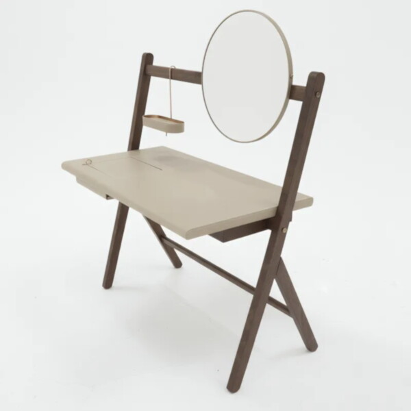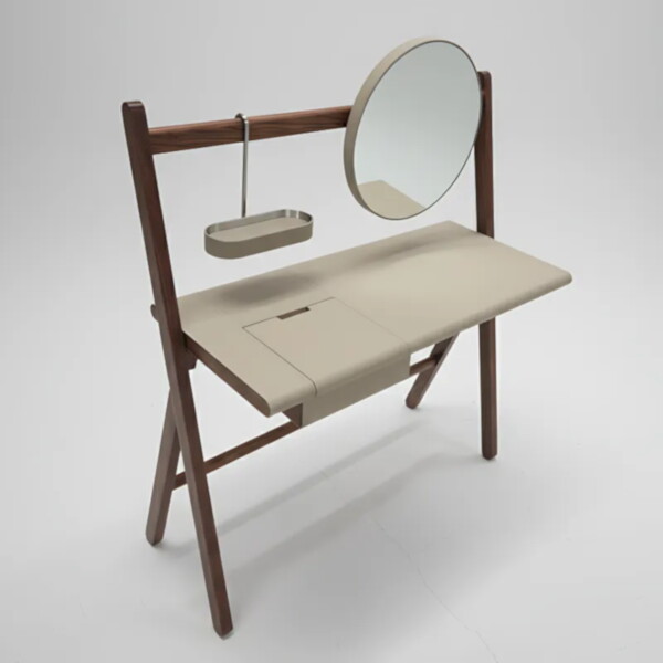 馬鞍皮面化妝桌 實木折疊造型設計