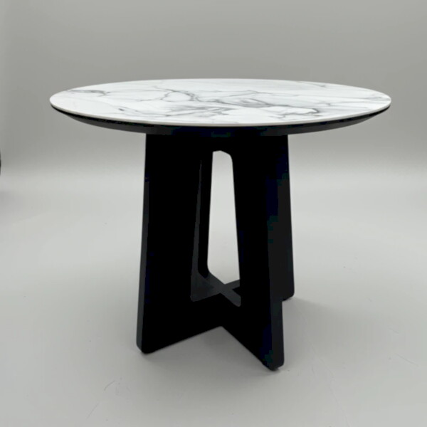 石材黑木紋幾何桌腳圓桌 俐落溫潤現代氣質