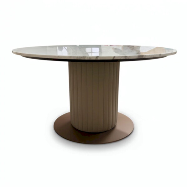 大理石面皮革腳圓桌 厚實圓柱皮革桌腳