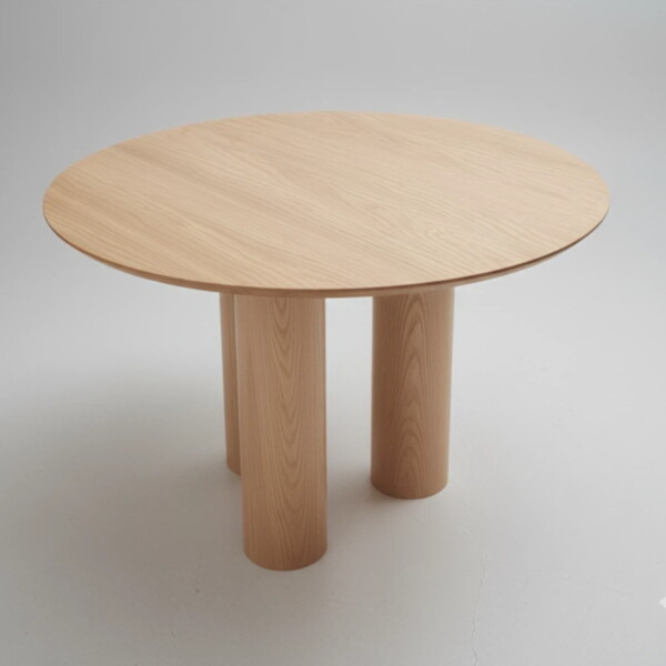 弧邊淺木紋三圓腳圓桌 線條極簡結構穩重