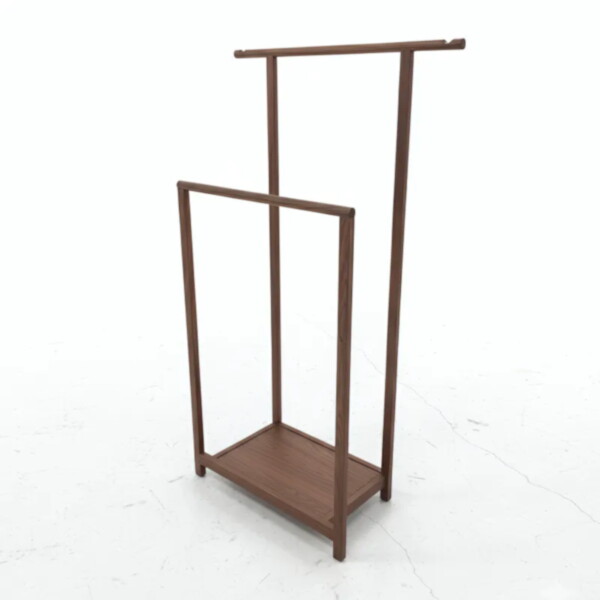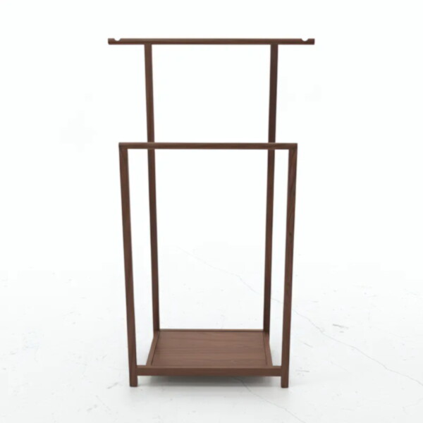 深棕實木立式衣帽鞋架,極簡框架打造空間收納焦點。上方雙橫桿寬敞吊掛外套圍巾,方形底座穩固不搖晃。溫潤木紋質感融入北歐日系空間,圓潤邊角安全親膚。無論小坪數公寓或現代宅,讓門面俐落有型。