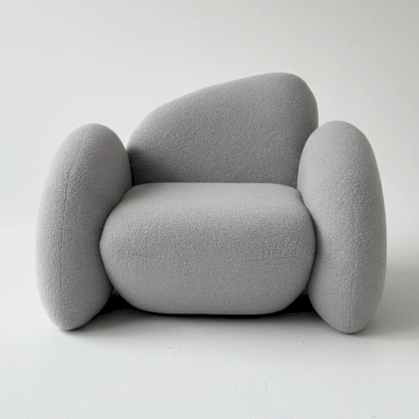 圓弧雲朵輪廓,bulbous軟雕塑家具風格的視覺焦點。