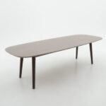 狹長橢圓桌面,讓動線更流暢,適合窄長型餐廳。