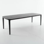 柔和圓弧邊緣搭配細長圓柱桌腳,呈現優雅北歐極簡風格。