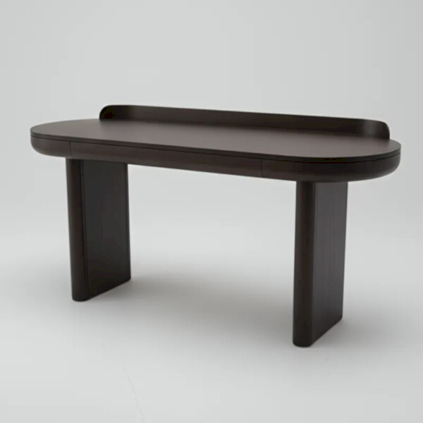 實木檯面搭配圓弧形設計,視覺沈穩又圓潤,適合現代極簡空間。
