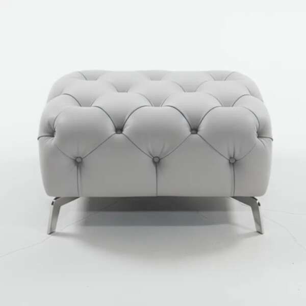 柔軟蓬鬆的菱格深扣設計,讓這張腳凳一眼就像雲朵落在客廳中央。 淺灰皮質低調耐看,搭配俐落金屬腳座,呈現帶點古典味的現代精品風格。 抬腳休息時是最舒適的腳凳,來客時則化身臨時座位,也能加上托盤當茶几使用。 小小一張,卻替空間加分不少。