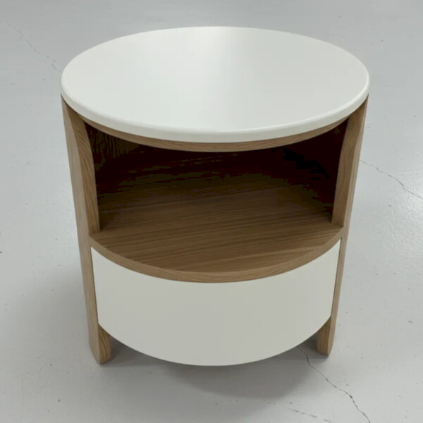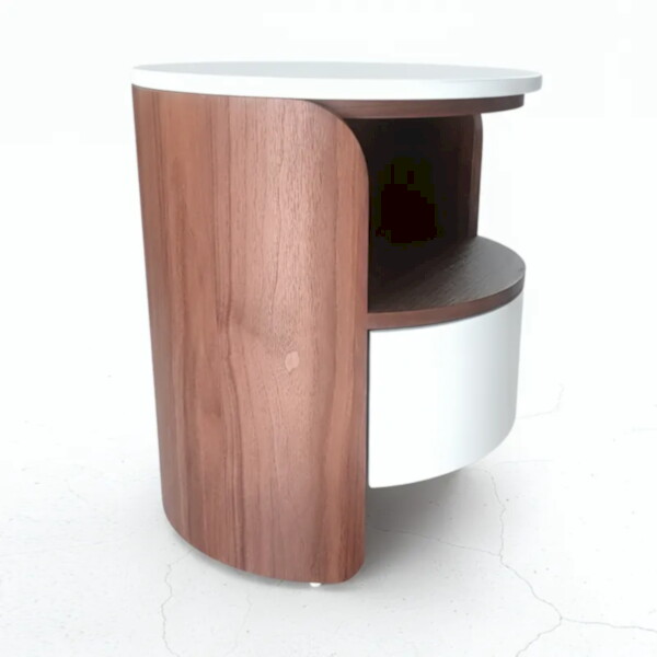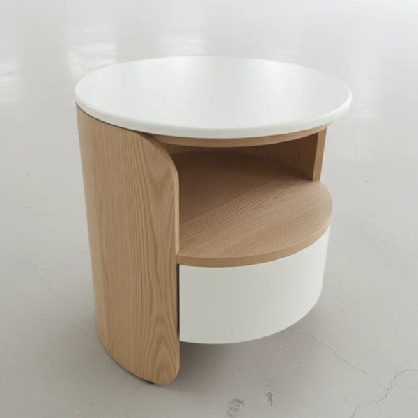 用一個圓形 床頭櫃,替臥室加入柔軟調性。圓弧桌面與側板減少銳角,走動更安心,也讓視覺更溫和。上層開放格好放睡前書與小物,下層弧形抽屜收納不想被看見的日常。搭配三種木色與奶油白配色,無論現代、北歐或日系風都能輕鬆融入。