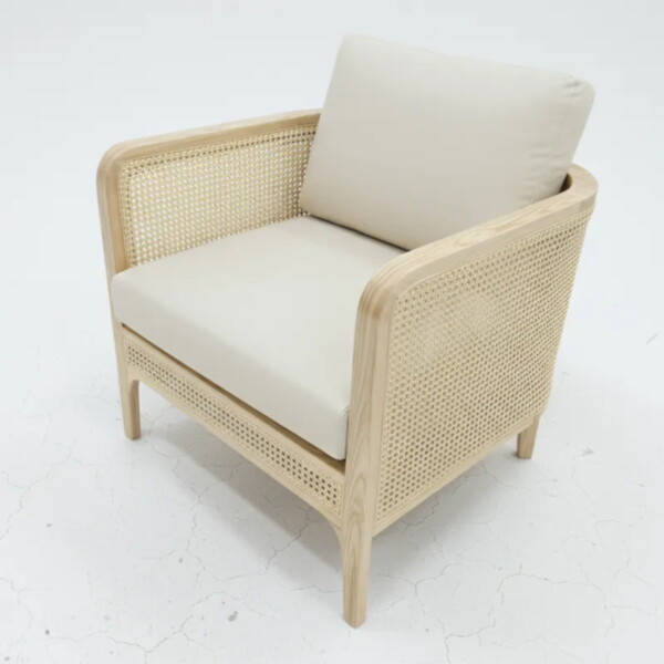 沉浸自然悠閒!此款藤編 單人椅,天然藤材編織堅韌透氣,搭配米白厚坐墊柔軟包覆,坐擁度假感。流線扶手與開放背設計,輕盈美觀又通風舒適;實木腳架穩固耐用,完美融入客廳或陽台。無論閱讀小憩或品茶,都讓生活多一分自然優雅。選它,喚醒居家度假魂!