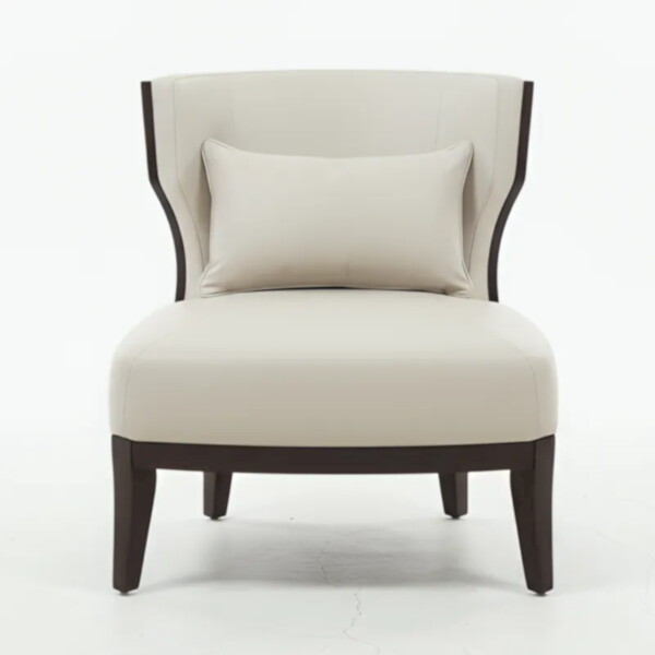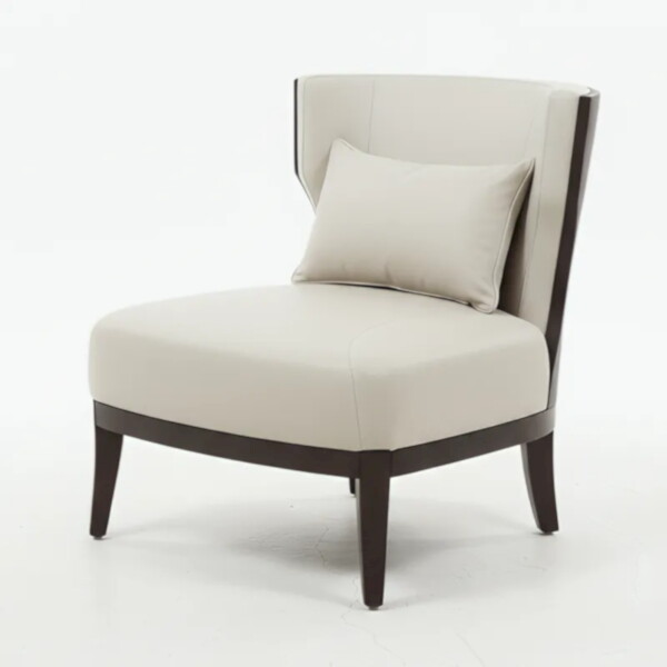 米白皮革翼背 單椅以高聳翼狀靠背與獨立抱枕,完美包覆肩頸,提供長效舒適支撐;PU皮革光澤耐髒,黑木椅背及實木腳座增添精緻層次,深胡桃木腿穩固優雅。無論客廳閱讀、辦公接待或咖啡廳點綴,都輕鬆注入輕奢氛圍,讓每刻坐姿成為設計宣言。