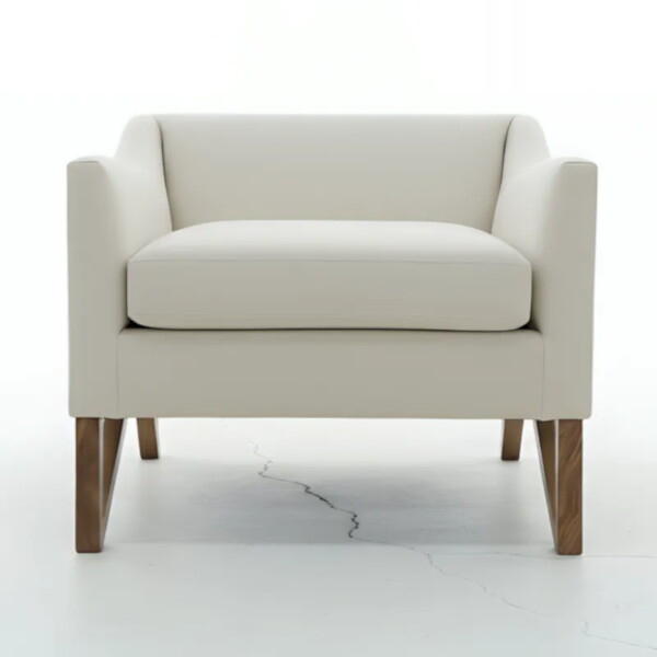 米白布面 休閒椅以方正坐姿與流線扶手,帶來全天舒適支撐;胡桃實木W型斜腿穩固溫潤,視覺輕盈不壓迫。柔軟透氣材質耐用易潔,無論獨自閱讀、品茶或搭配 沙發,都為客廳注入北歐簡約優雅。輕巧體積完美融入小坪數,日常休憩從此更有質感。