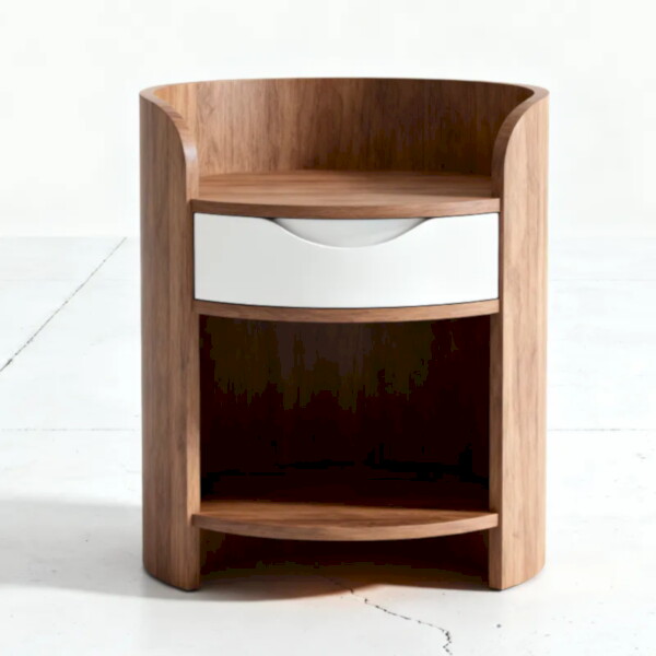 以溫潤胡桃木紋的弧形外框,搭配跳色的白色抽屜,讓這款 床頭櫃在簡約中展現自然質感。抽屜適合收納小物,下層層架則可放書本、香氛或睡前用品,機能完整又不顯厚重。無論搭配北歐、日系或現代風格,都能輕鬆融入,為臥室帶來更舒服的生活感。