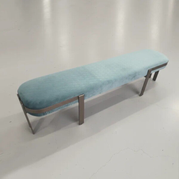 柔和藍色絨布包覆,搭配俐落不鏽鋼金屬腳座,展現輕奢空間美感。長條比例設計讓 長椅擺放更靈活,無論放在玄關、客廳或臥室床尾凳,都能自然融入各式風格。舒適坐感與簡約外型兼具,讓日常使用也能成為視覺焦點。