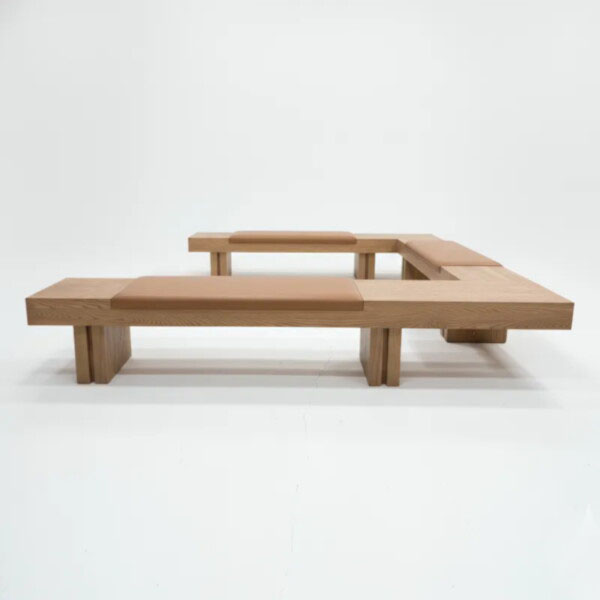 厚實木框自由勾勒直角組合,這款轉角 長凳專為玄關、大客廳與公共休憩區而生。局部鋪上皮革軟墊,坐感舒適又保留大片木質平台,方便放置包包與物品。貼牆擺放即可自然形成聊天角落或等候區,讓原本空白的邊角成為最有人氣的所在。